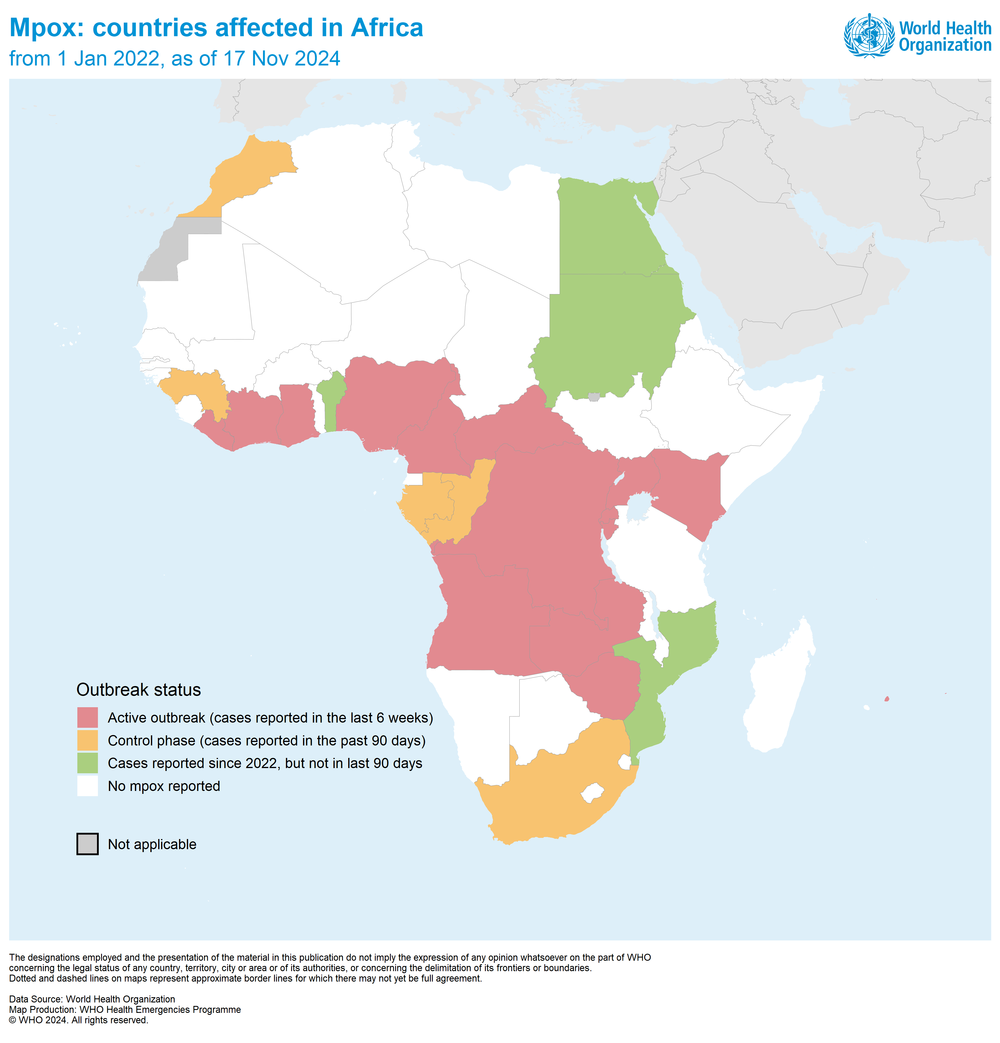 Mpox is not a new disease, and was first reported in the DRC in 1970. Mpox steadily emerged in central, east and west Africa following the eradication of smallpox in 1980, and with that, the end of worldwide smallpox vaccination. Since then, there have been sporadic reports of mpox cases in African countries, and in 2022, an outbreak appeared suddenly and rapidly spread globally. The outbreak was quickly contained thanks to behavioral change interventions and prompt vaccination of at-risk populations, mainly men who have sex with men (MSM).